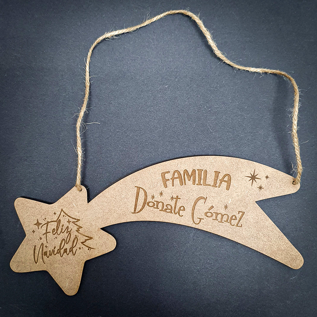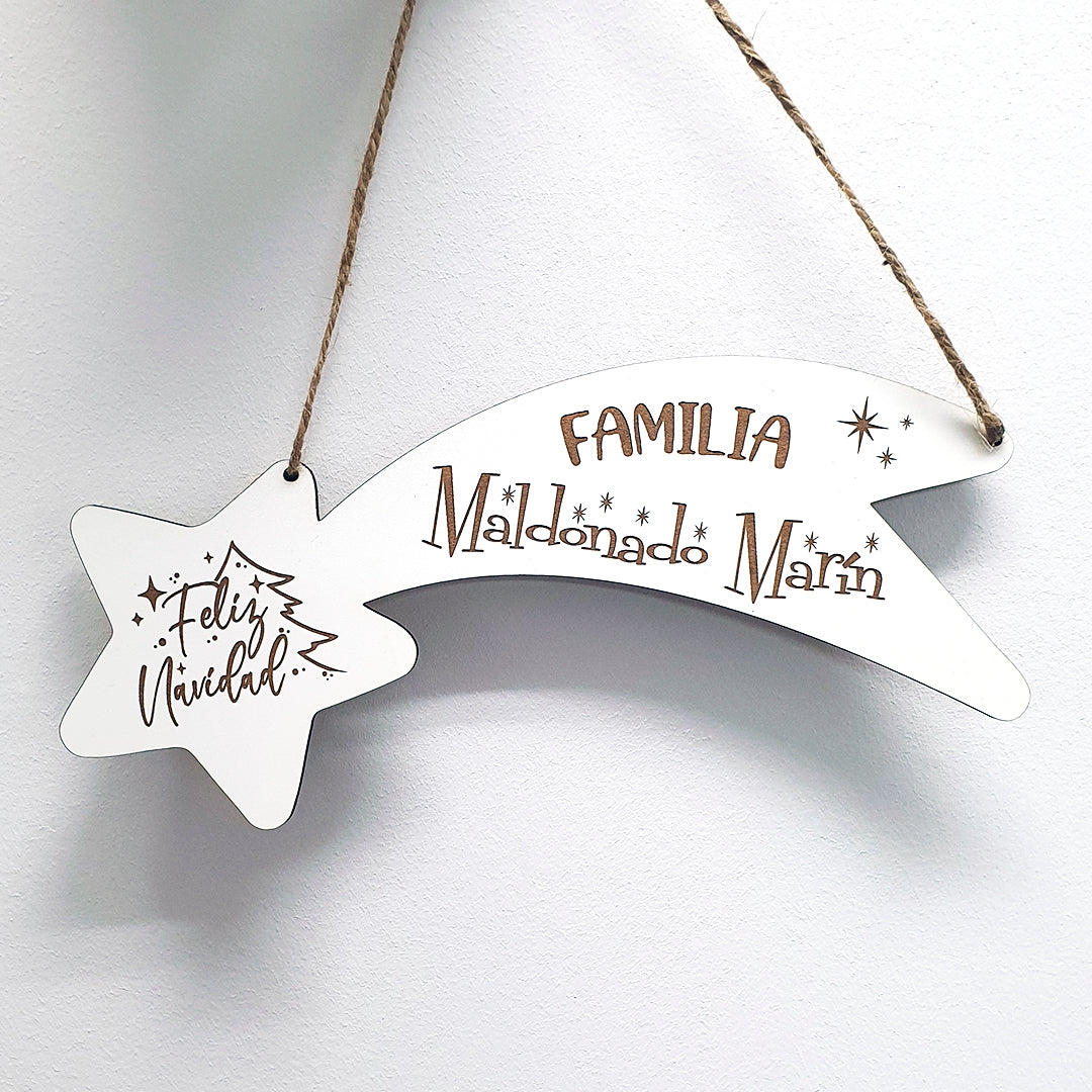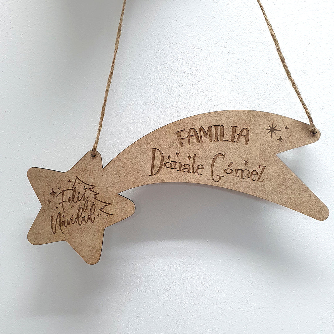 Estrella Fugaz de Madera Personalizada para el Árbol Navidad o Puerta de tu casa