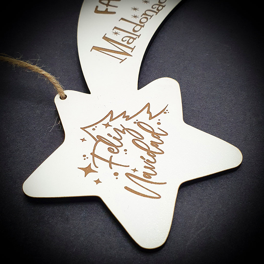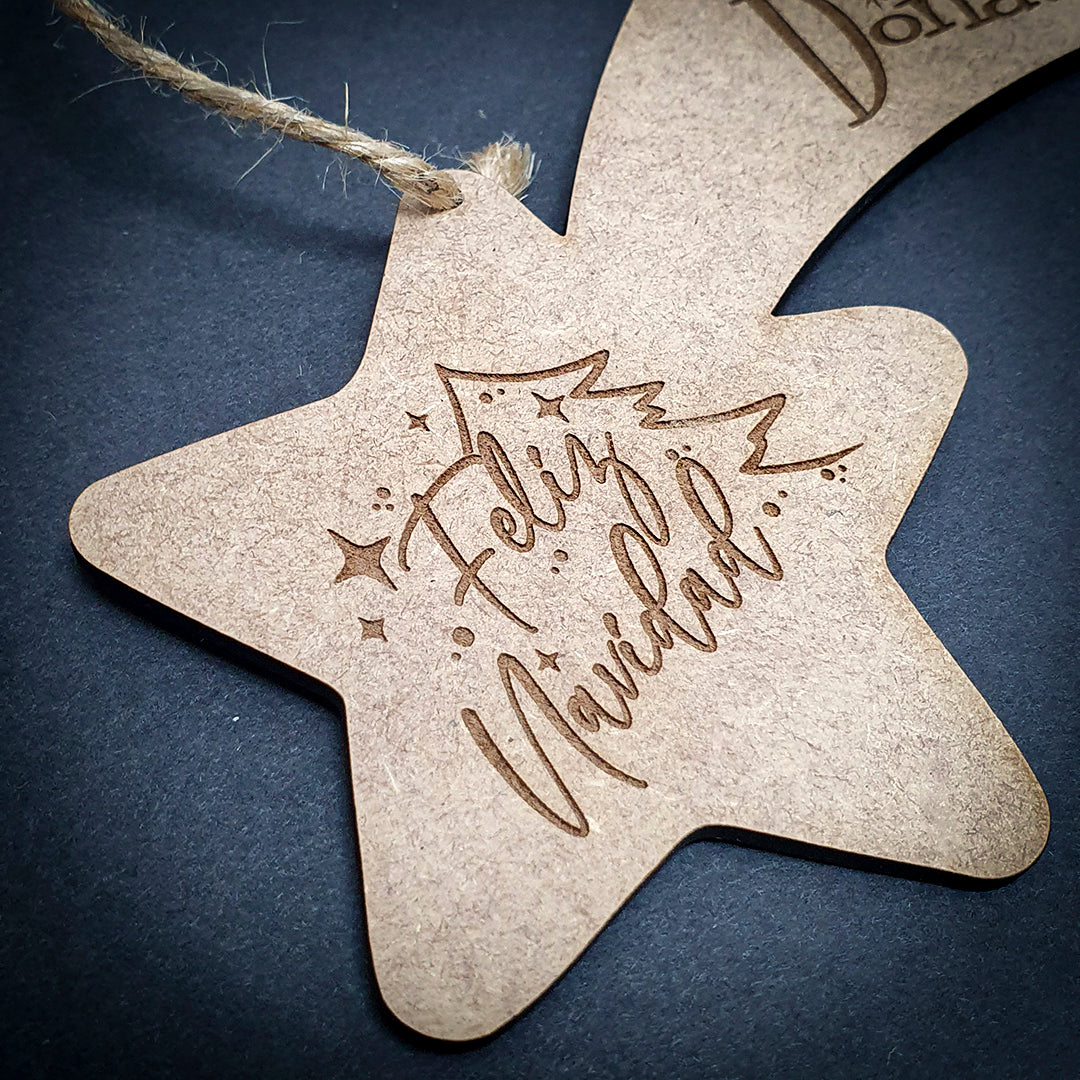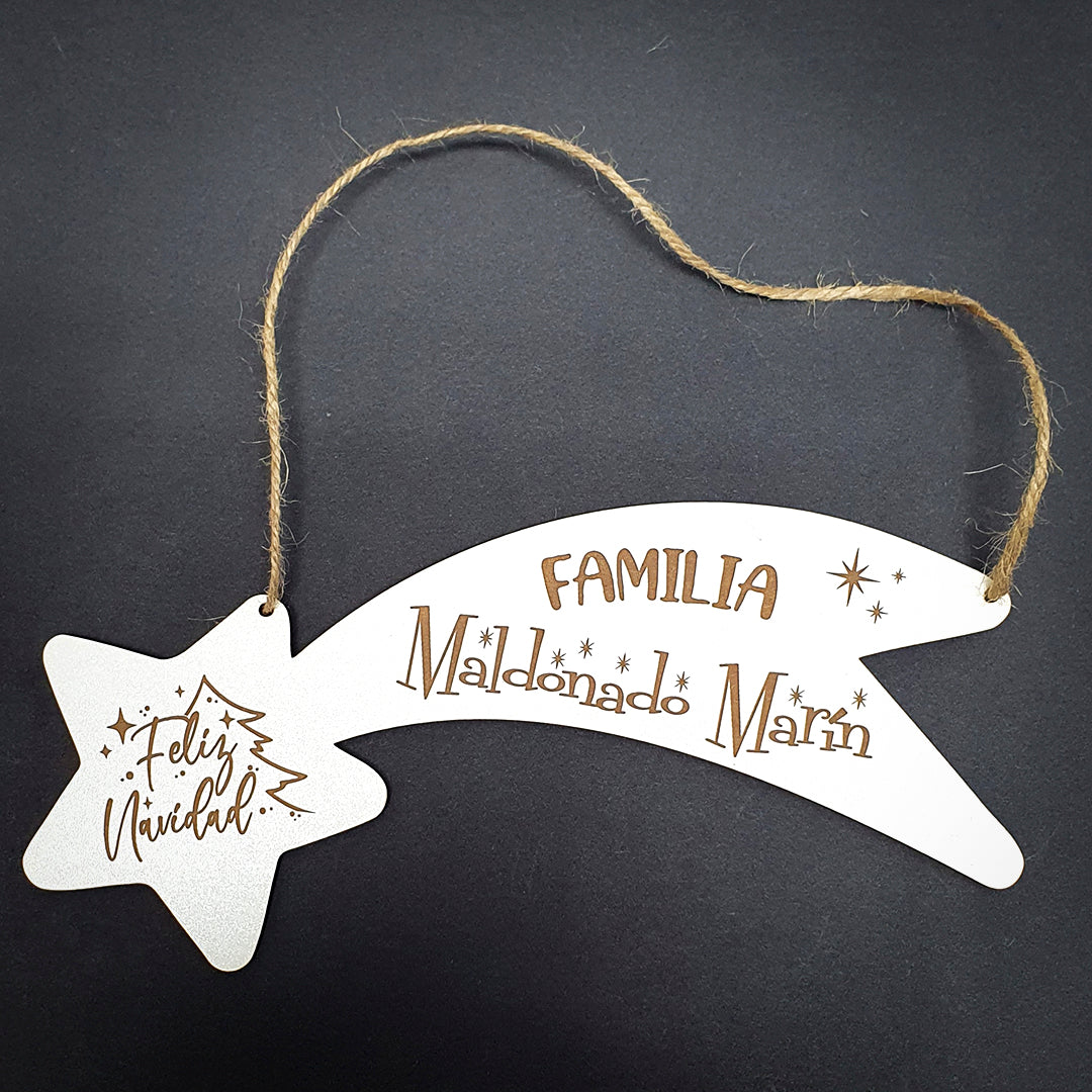 Estrella Fugaz de Madera Personalizada para el Árbol Navidad o Puerta de tu casa