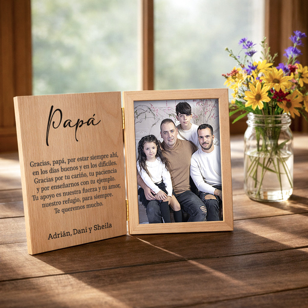 Marco de Fotos Tipo Libro Personalizado para Papá | Regalo de Madera con Grabado Láser