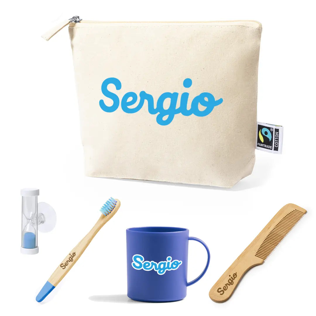¡Haz que la rutina de higiene sea divertida y personalizada! Este completo set dental infantil con nombre, está pensado especialmente para niños y niñas de primaria. Ideal para llevar al colegio, excursiones o dejar en casa de los abuelos, combina funcionalidad, diseño ecológico y un toque único con el nombre grabado de tu peque.