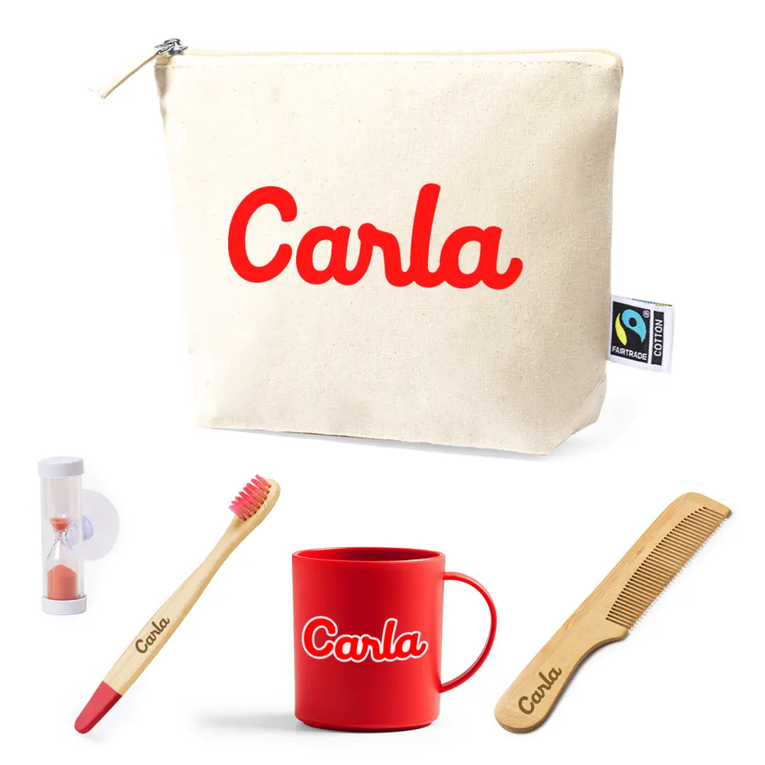 Set Dental Rojo Infantil Personalizado con Nombre