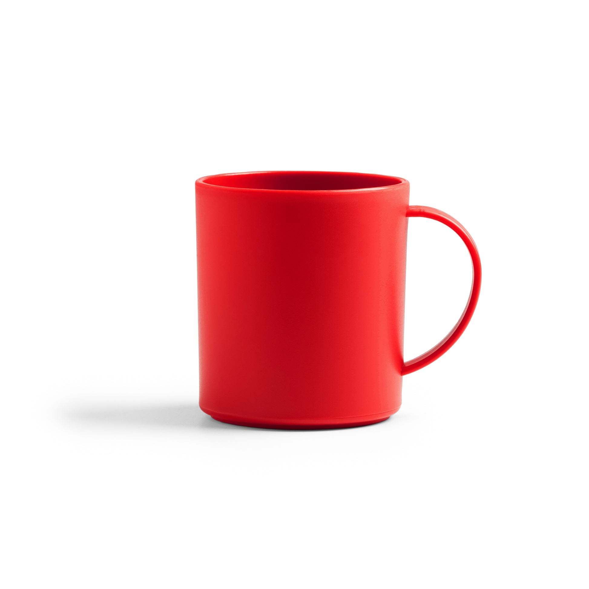 ✅ Taza plástica de Polipropileno reutilizable de 300 ml con asa del mismo color que el cuerpo.
